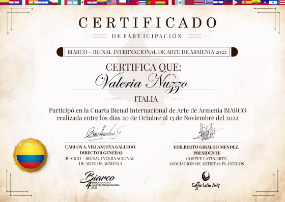 20 Ottobre -15 Novembre 2022 – “Osmosi” e “Layer” vincono il primo premio alla IV Biennale Internazionale di Arte Colombiana ARMENIA BIARCO, categoria astratto, sezione virtuale
