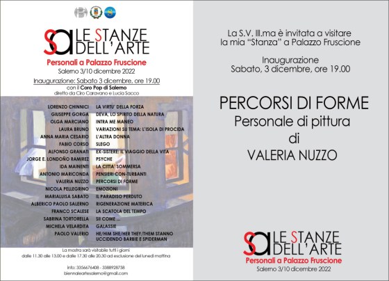 Vi aspetto tutti, dal 3 al 10 Dicembre, a Palazzo Fruscione, per visitare la Personale ”Percorsi di forme”, all’interno delle … Altro