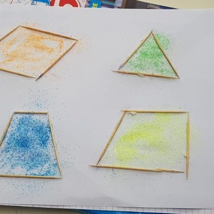 Per consolidare ancora i concetti ricordati, l’insegnante fa svolgere agli alunni un’attività laboratoriale: chiede agli alunni di realizzare su un foglio a4, a proprio piacimento, scegliendo tra quelli presenti nell’opera d’arte analizzata, alcuni dei poligoni, utilizzando gli stuzzicadenti o delle piccole asticelle di legno da incollare su foglio a4, specificando sotto la figura il nome e classificando il poligono in relazione alla sua regolarità.