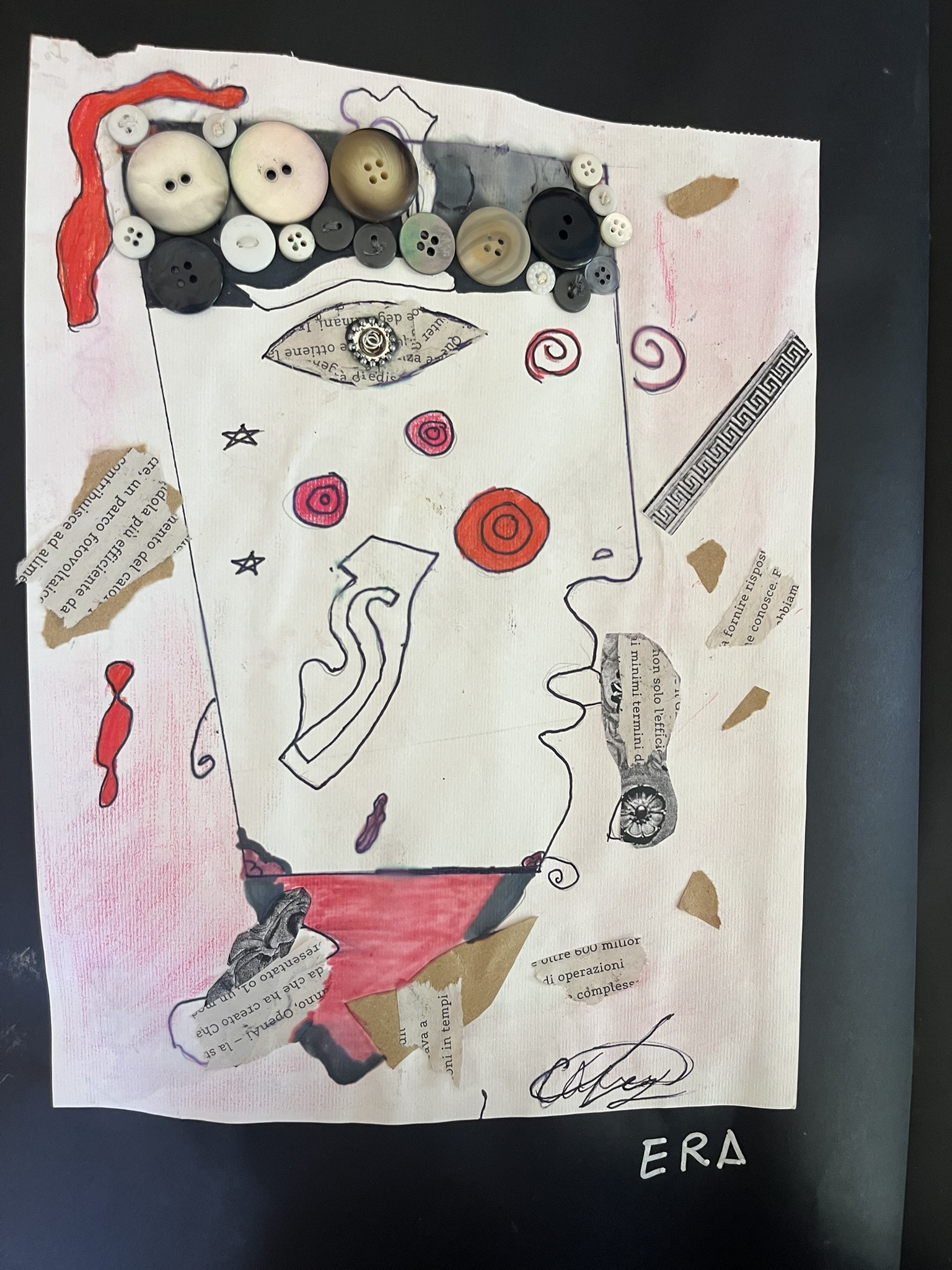 Pur nelle peculiarità delle singoli realizzazioni, ne è venuto fuori un manufatto collettivo che ha caratteri propri di un’opera d’arte matura, in cui si sente progettualità, unità di pensiero e in cui il ricorso al linguaggio e ai materiali comuni conferisce uniformità stilistica ed estetica senza nulla togliere alla fresca espressività personale dei bambini. L’ispirazione tratta da artisti come Enrico Baj e Bruno Munari, così come dalle prime avanguardie figurative – in particolare il Futurismo con le sue tavole tattili e il Dadaismo con i suoi collage – ha permesso ai bambini di sviluppare una visione artistica più ampia. Questo percorso li ha avvicinati in modo intuitivo alle pratiche proprie dell’arte astratta e concettuale moderna e contemporanea, che saranno poi approfondite in chiave teorica nel corso del terzo anno. Con questo laboratorio ho adottato una metodologia volta a integrare le conoscenze teoriche di storia dell’arte nella pratica espressiva, con l’obiettivo di promuovere un apprendimento critico e consapevole, capace di condurre gli studenti all’analisi visiva delle opere. In questo modo, il “fare” diventa strumento per il “conoscere”.